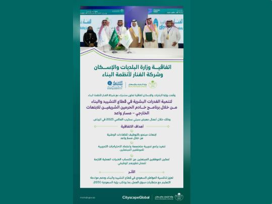 جاء ذلك برعاية وزير البلديات والإسكان، ماجد بن عبدالله الحقيل، وضمن فعاليات معرض “سيتي سكيب العالمي 2025” الذي استضافته مدينة الرياض خلال الفترة من 17 إلى 20 نوفمبر الجاري. بمشاركة محلية ودولية واسعة في قطاع التطوير العقاري والإنشاءات.