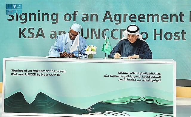 وقّعت المملكة العربية السعودية والأمم المتحدة، اليوم، اتفاقية لعقد الدورة السادسة عشرة من مؤتمر مكافحة التصحر (COP 16) في العاصمة الرياض، خلال الفترة من 2 إلى 13 ديسمبر 2024م.