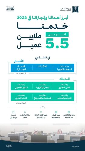 تمكنت وزارة التجارة من تحقيق إنجازات ملحوظة في تقديم خدماتها للعملاء في عام 2023، حيث بلغ عدد العملاء الذين استفادوا من خدماتها أكثر من 5.5 مليون عميل في قطاعي الأعمال والمستهلك.